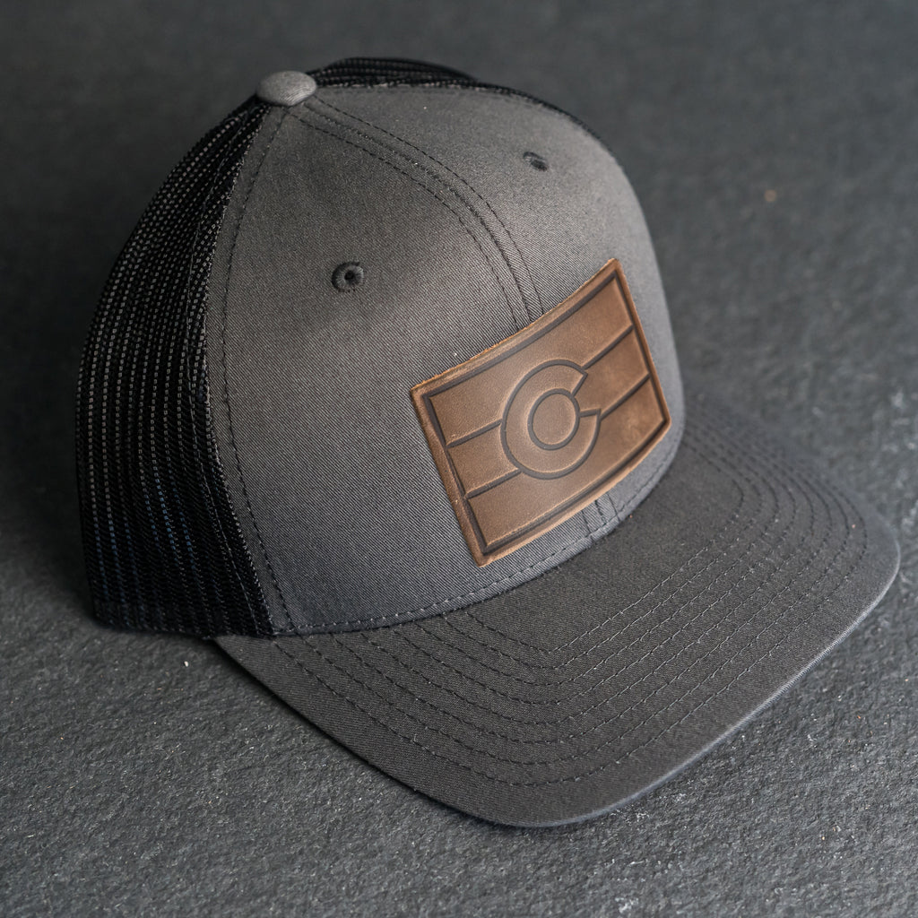 Leather Patch Trucker Style Hat - Colorado Flag Stamp