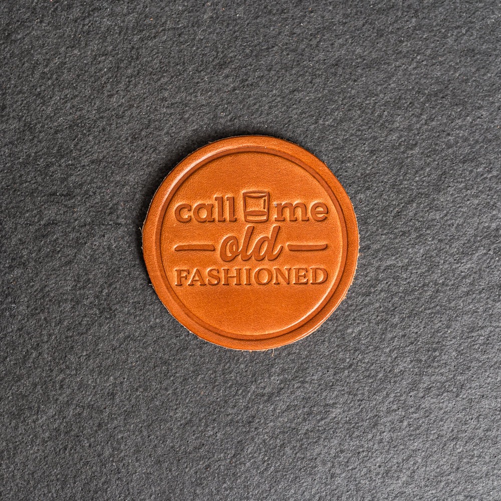 These stylish full grain leather coasters offer sophisticated protection for your table surface with a unique Call Me Old Fashioned stamp design. Sold individually or as a set of 4, they make a great addition to any home or office decor. Excite your guests and add an artistic touch to your space!