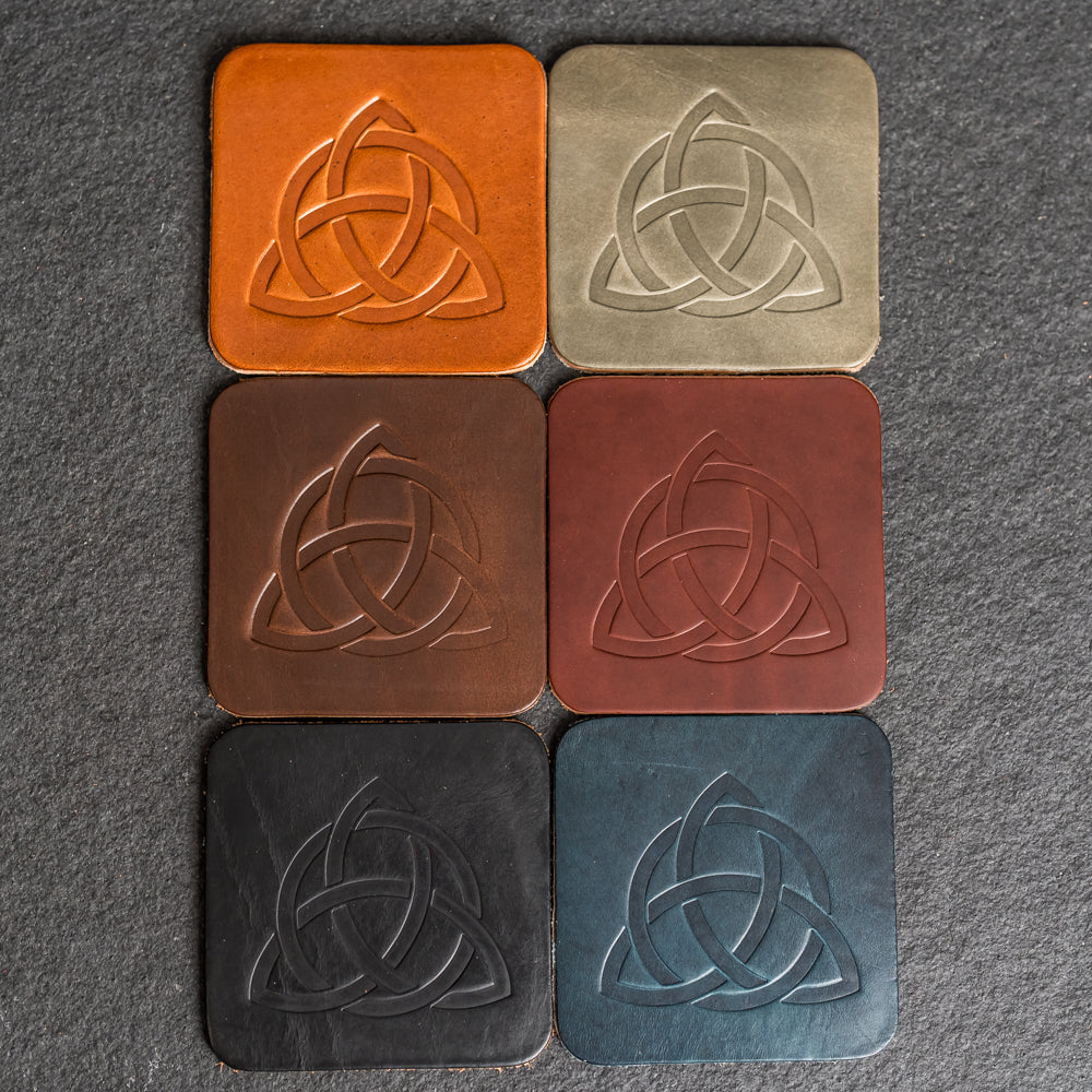 Crafted from full grain leather, this set of four coasters features an embossed Celtic Knot symbol, making it the perfect addition to the game room of any experienced or aspiring tabletop gamer. Make your game nights even more enjoyable with these timeless leather coasters.