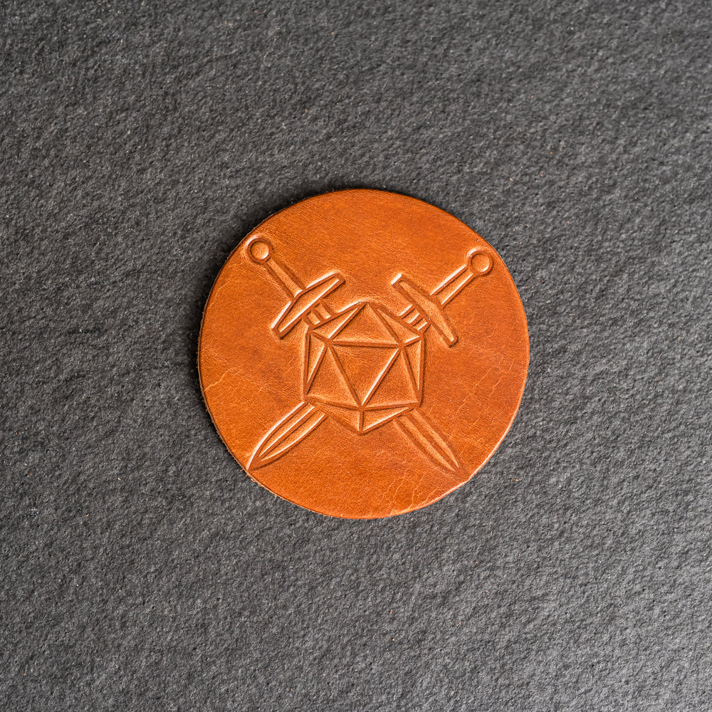 Crafted from full grain leather, this set of four coasters features an embossed D20 dice symbol with swords, making it the perfect addition to the game room of any experienced or aspiring tabletop gamer. Make your Dungeons and Dragons game nights even more enjoyable with these timeless leather coasters.