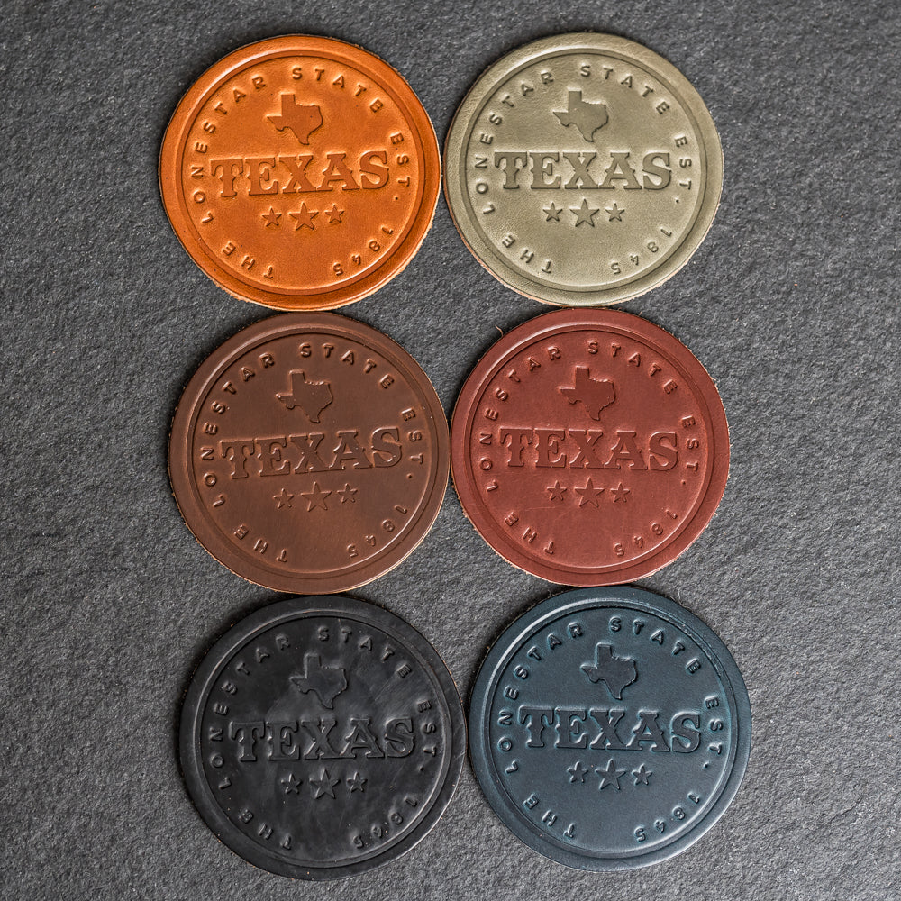 These stylish full grain leather coasters offer sophisticated protection for your table surface with a unique Texas stamp design. Sold individually or as a set of 4, they make a great addition to any home or office decor. Excite your guests and add an artistic touch to your space!