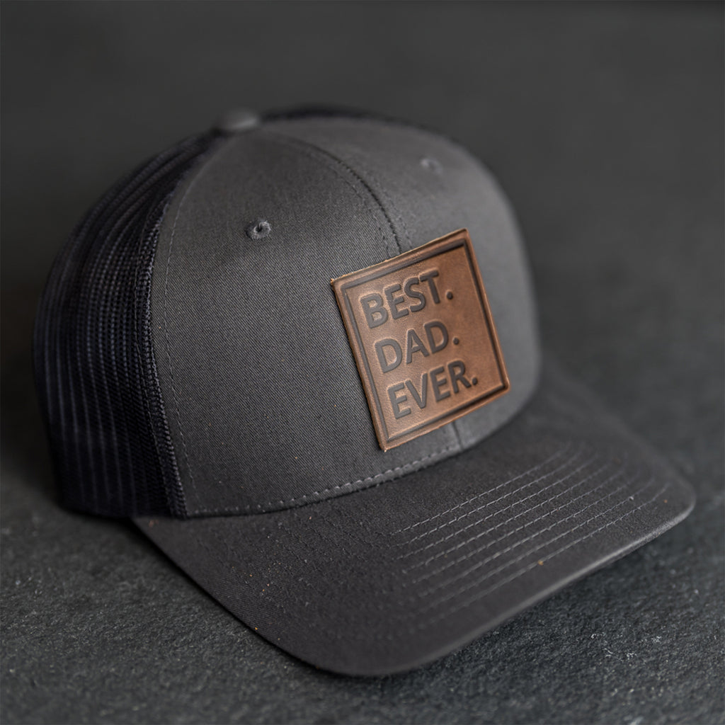 Leather Patch Trucker Style Hat - Best Dad Ever Stamp