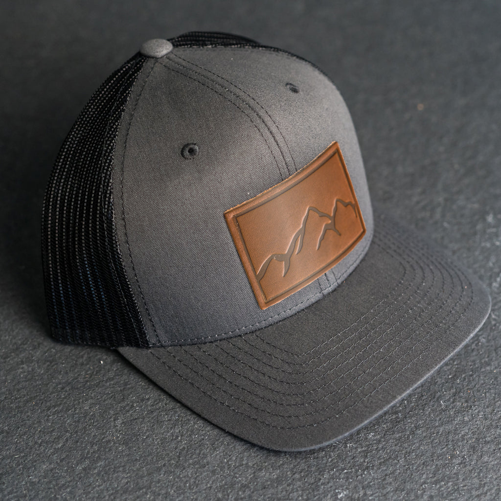 Leather Patch Trucker Style Hat - Mountain Range Stamp