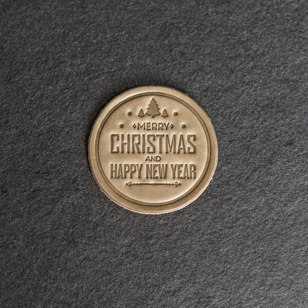 These stylish full grain leather coasters offer sophisticated protection for your table surface with a unique Merry Christmas stamp design. Sold individually or as a set of 4, they make a great addition to any home or office decor. Excite your guests and add an artistic touch to your space!