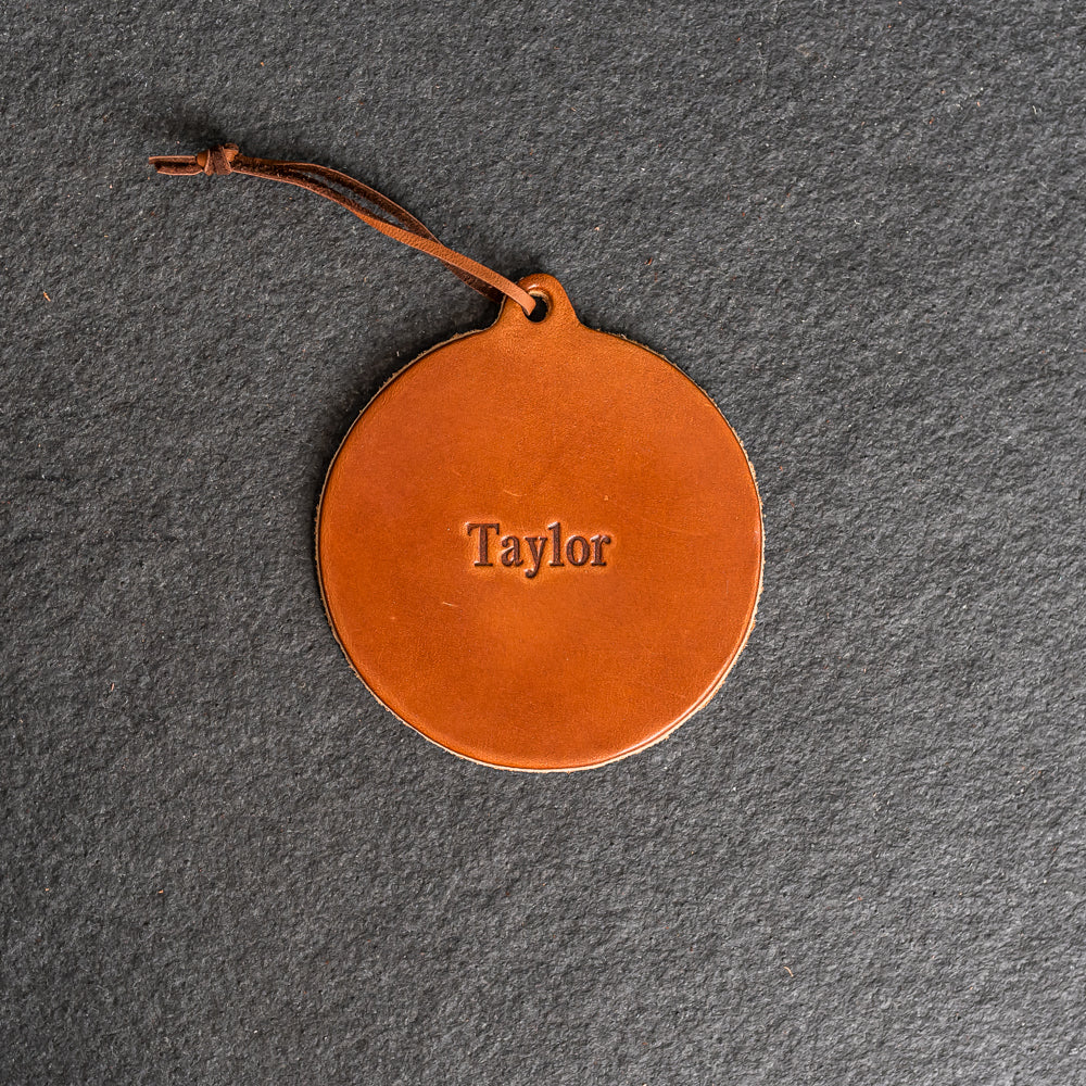 Personalized Circle Shape Leather Christmas Ornament | Stocking Tags