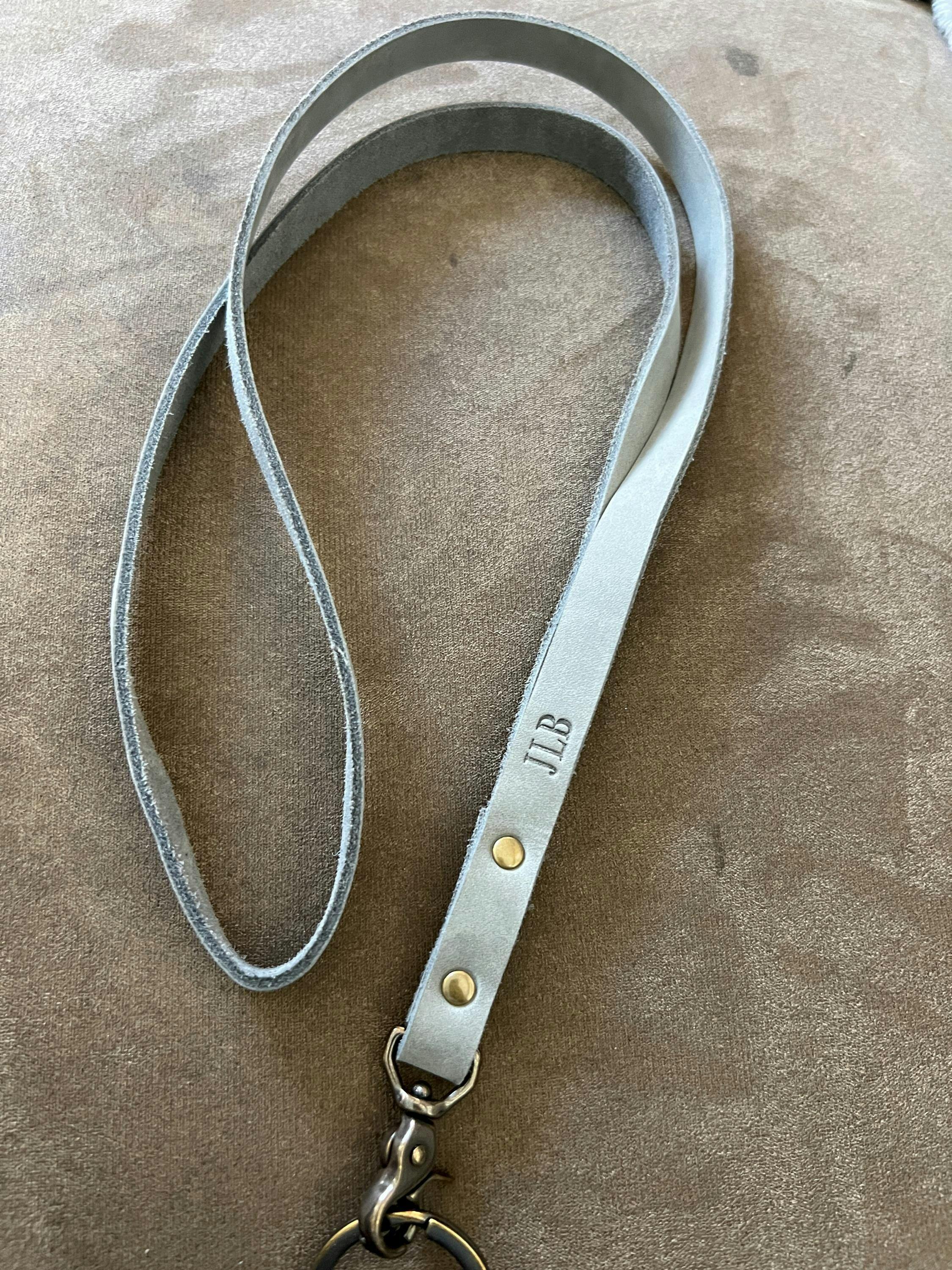 Keep track of your keys or ID badge holder with this premium personalized leather lanyard! Get your initials or name (or get creative) stamped into your leather lanyard. You won't find better quality or thicker leather anywhere! Made by hand in our workshop in the USA! Looking to get a lanyard and badge holder, check out our ID badger holder and lanyard combo.